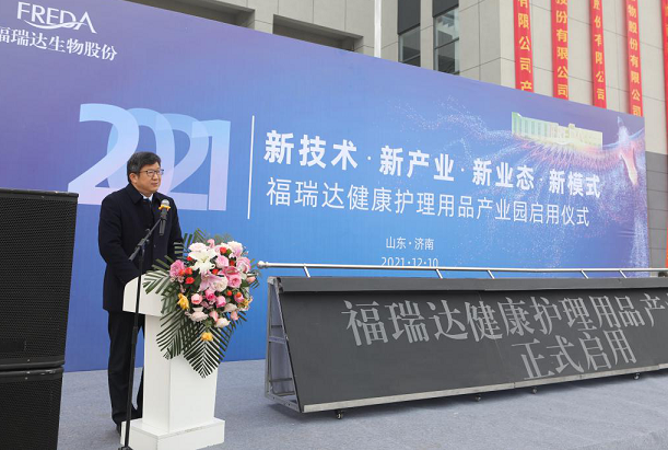 济南高新区生命科学城发展中心副主任田永伟出席启用仪式并致辞,他说:“米兰web版登录入口健康护理用品产业园的正式启用,不仅是米兰web版登录入口集团的大事,也是我们生命科学城的喜事。将进一步提升生命科学城在化妆品、医美产业的聚集度和影响力,进一步提升生命科学城整体形象和竞争力,带来技术、人才以及上下游产业链资源的聚合和大幅提升。”